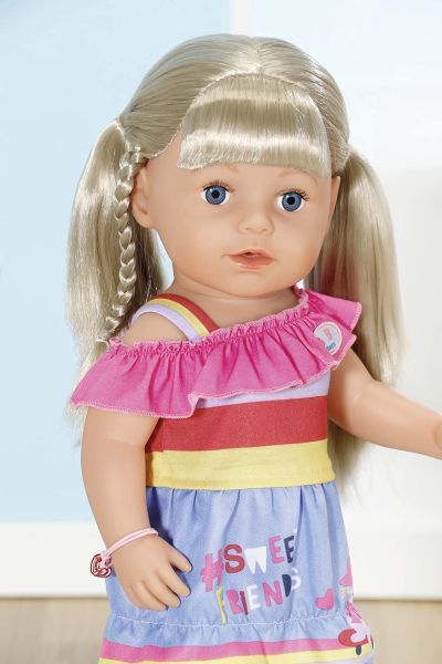 The BABY born EA Sister doll, measuring 43 cm, features a vibrant red outfit that adds charm and character. Designed for realistic play, this doll encourages nurturing skills and imaginative storytelling. Its size is perfect for little hands, making it an ideal companion for children to develop empathy and social interaction through role play.